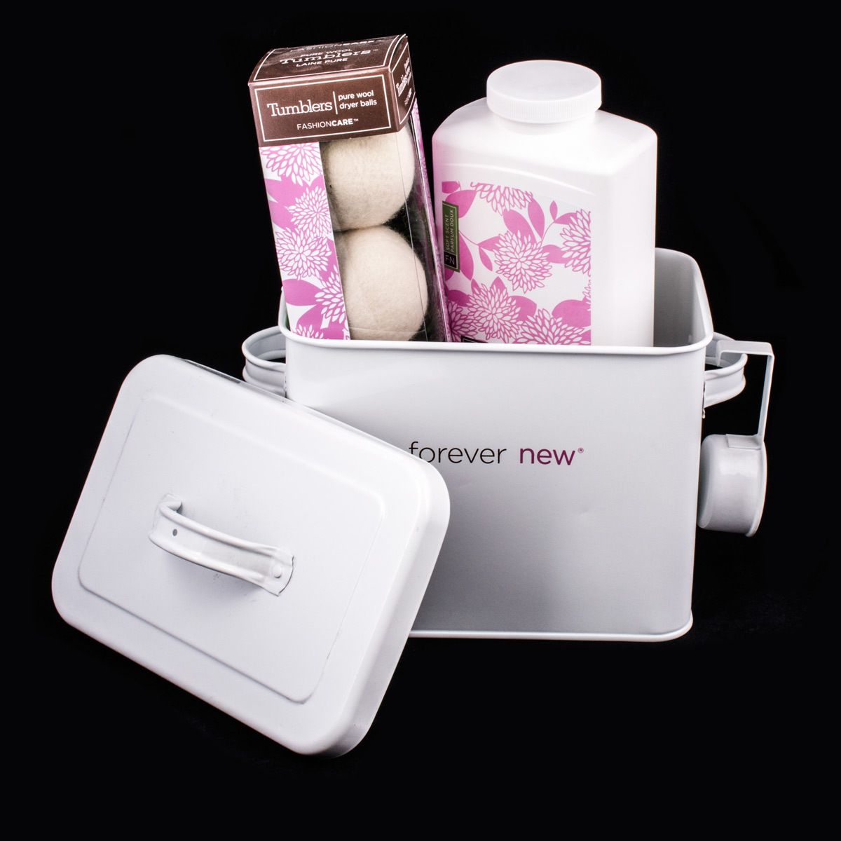 Forever New :contenant en étain décoratif pour poudre lessive, un paquet de 3 balles de laine et 1kg de poudre lessive. Gardez votre Forever New à portée de main - dans cette magnifique boîte contemporaine avec une cuillère assortie pour une mesure facile. Stocke jusqu'à 3kg de Forever New