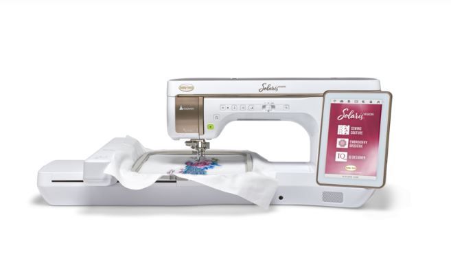 L'avenir de la créativité est arrivé avec la machine à coudre, à broder et à quilter Solaris Vision. Le projecteur IQ Visionary™ intégré du Solaris Vision affiche de manière vivante les points et les motifs